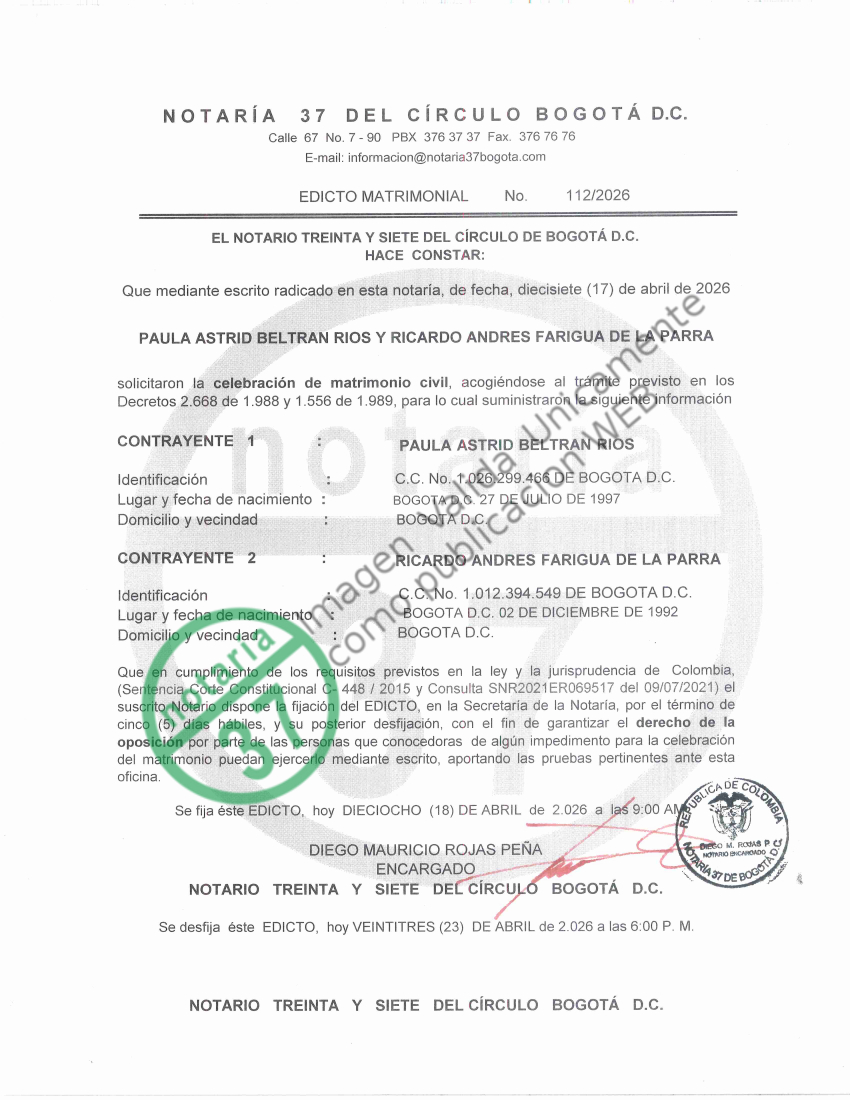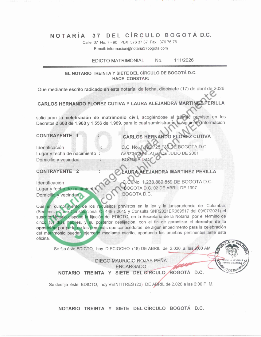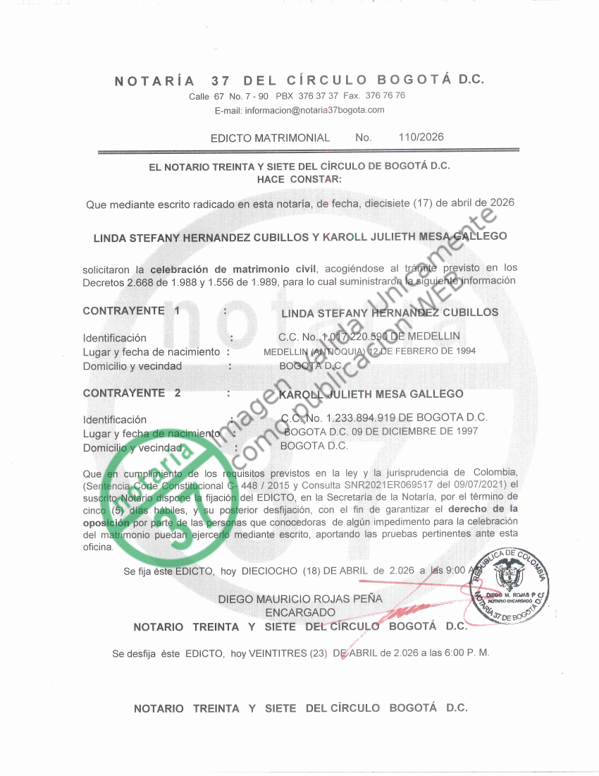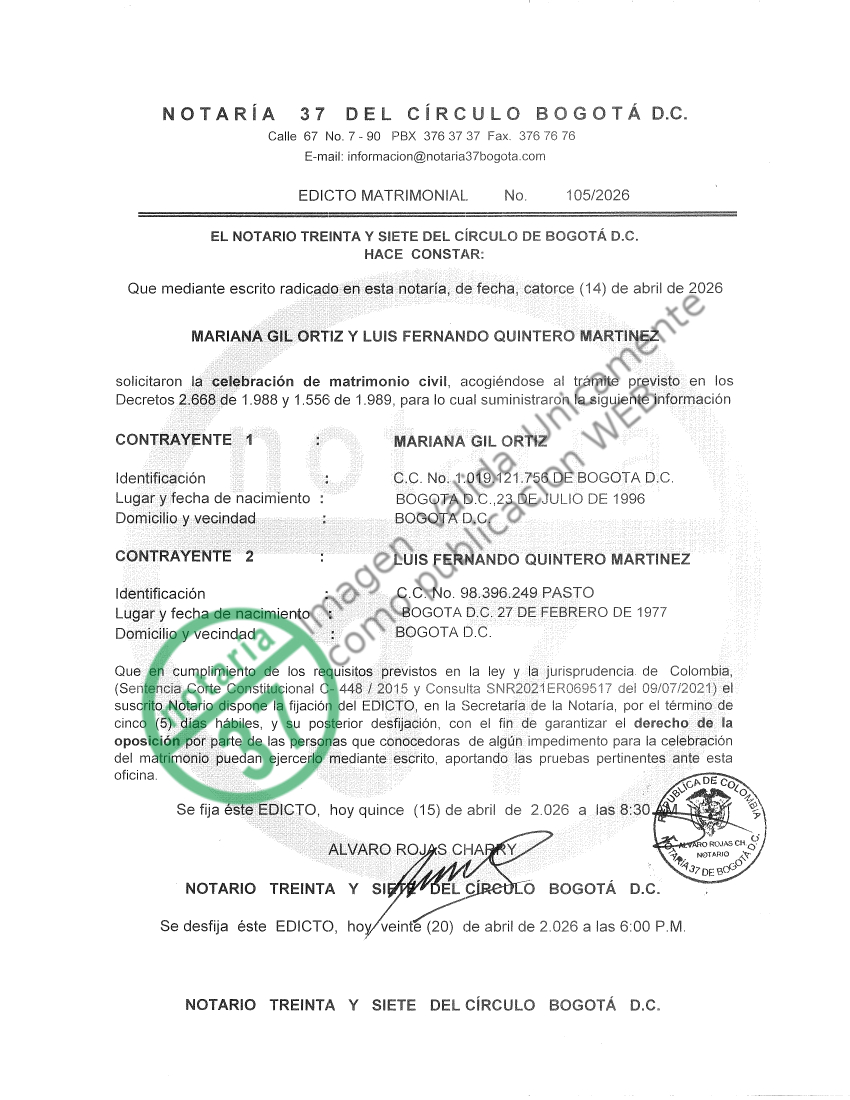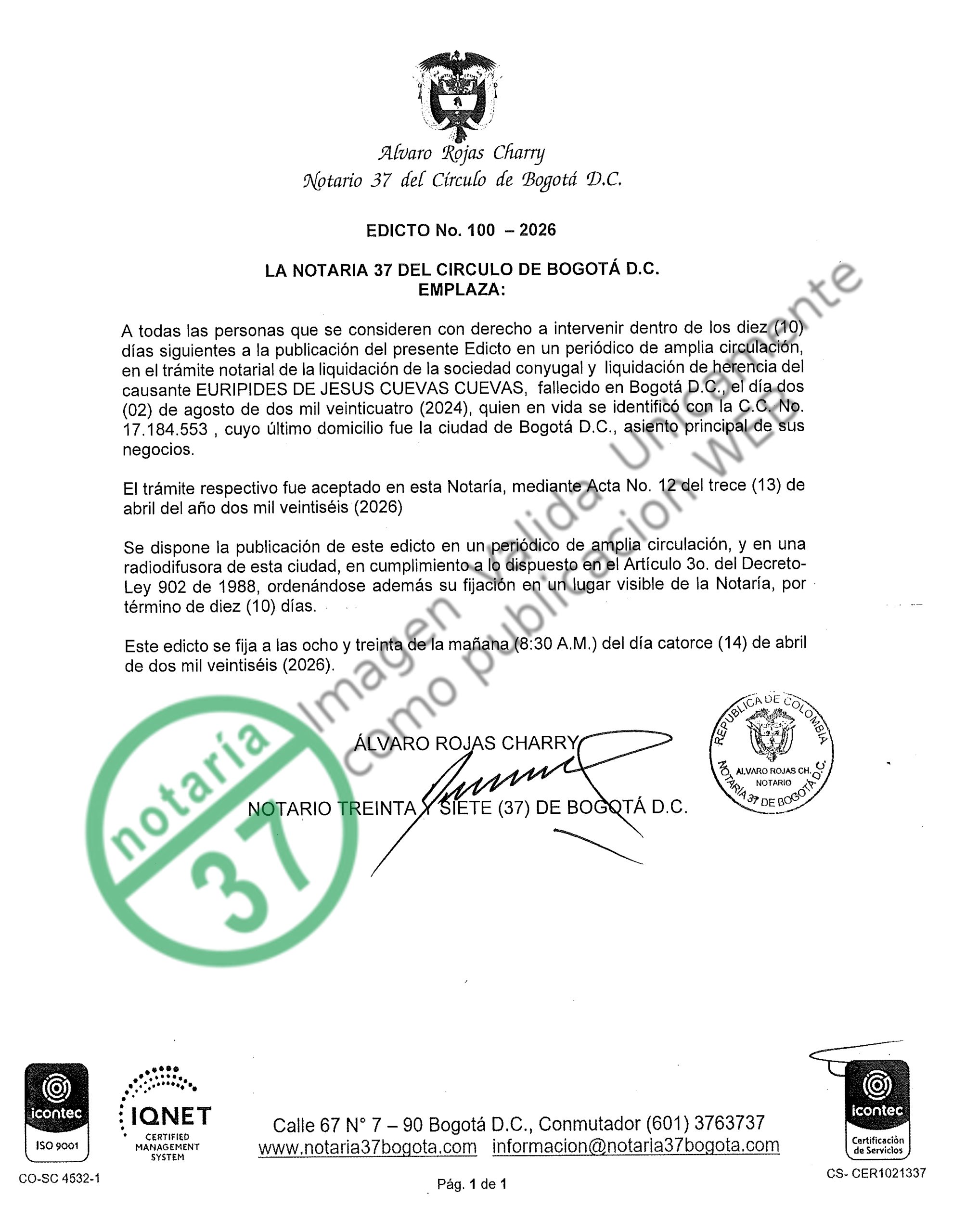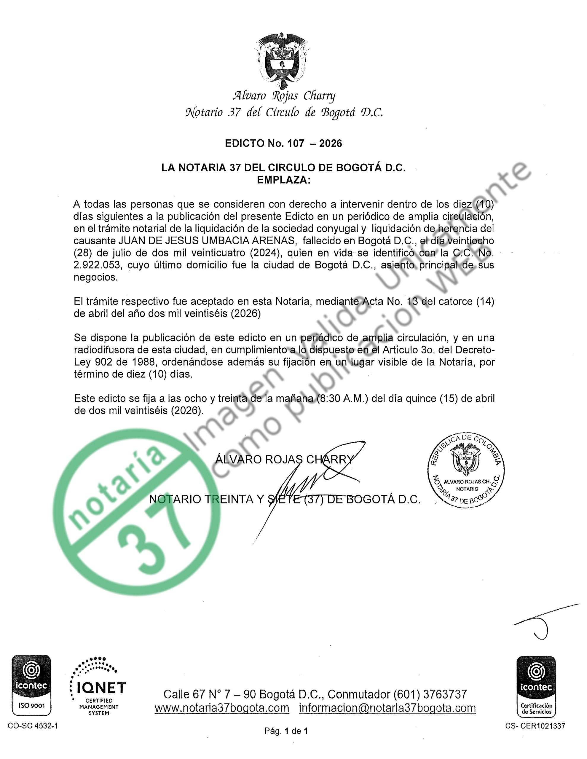 NOTARIA 37 DEL CÍRCULO DE BOGOTÁ